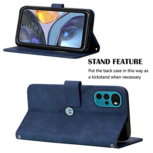 IMEIKONST Custodia Compatibile con Motorola Moto G22, Portafoglio Magnetica Case in Pelle PU, Slot per Schede Caso Stand Funzione Cover per Moto G22. Stile Aziendale Dark Blue YBS