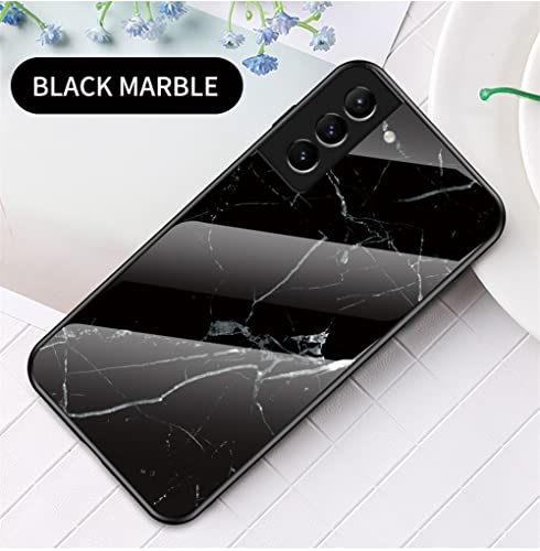 IMEIKONST Custodia Compatibile con Samsung Galaxy S22 Plus Cover Marmo, Vetro Temperato Posteriore Bordo Morbido in TPU Bumper Sottile Antiurto Protettiva per Samsung S22 Plus. Nero Argento LSM