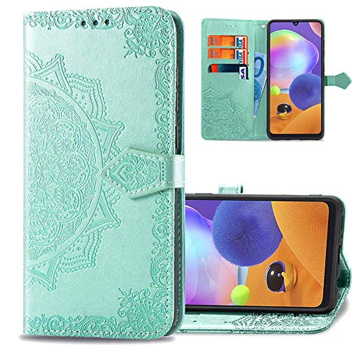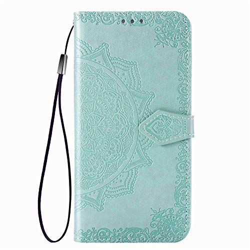 IMEIKONST Flip Case per Samsung J4 Prime, Mandala in Rilievo Design Custodia Bookstyle Pelle PU Durable with Slot Carte Portafoglio Protettiva Stand Caso per Samsung Galaxy J4 Plus Mandala Green SD