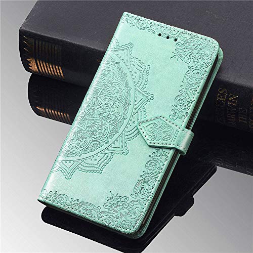 IMEIKONST Flip Case per Xiaomi Mi Note 10 Lite, Mandala in Rilievo Custodia Bookstyle Pelle PU Durable with Slot Carte Portafoglio Protettiva Stand Caso per Xiaomi Mi Note 10 Lite Mandala Green SD