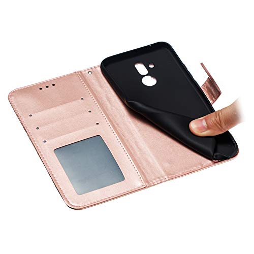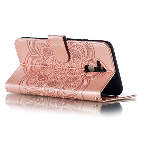 IMEIKONST Huawei MaiMang 7 Custodia Embossed Premium Phone Cover a Libro in Pelle PU Flip Portafoglio Holder Protettiva Magnetic Stand Caso per Huawei Mate 20 Lite Mandala Rose Gold LD