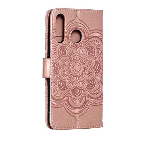 IMEIKONST Huawei Nova 4e Custodia Embossed Premium Phone Cover a Libro in Pelle PU Flip Portafoglio Holder Protettiva Magnetic Stand Caso per Huawei P30 Lite Mandala Rose Gold LD