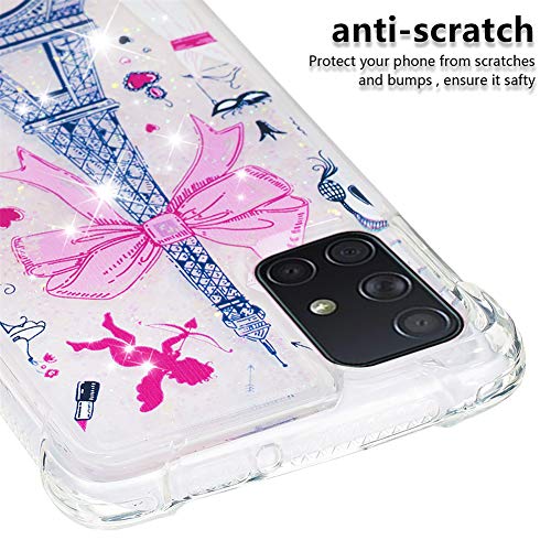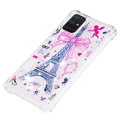 IMEIKONST Liquido Case per Galaxy A71, Bello Glitter Brillante Floating Sabbie Mobili Custodia Trasparente Silicone TPU Antiurto Protettivo Copertura per Samsung Galaxy A71 Bling Bow Tower YB