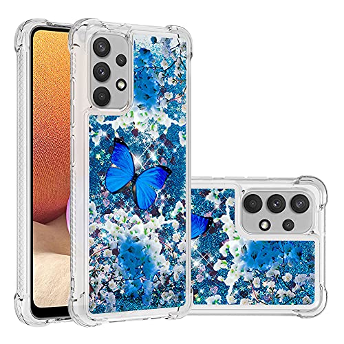 IMEIKONST Liquido Custodia per Samsung Galaxy A32 4G, Brillante Galleggiante Sabbie Mobili Custodia Trasparente Silicone TPU Antiurto Protettivo Custodia per Galaxy A32 4G. Bling Blue Butterfly YB