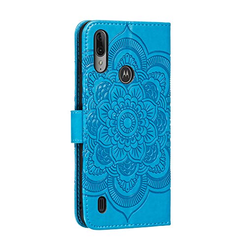 IMEIKONST Moto E6S 2020 Custodia Embossed Premium Phone Cover a Libro in Pelle PU Flip Portafoglio Holder Protettiva Magnetic Stand Caso per Motorola Moto E6S 2020 Mandala Blue LD