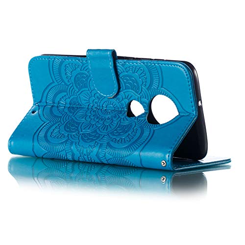 IMEIKONST Motorola Moto G7 Custodia Embossed Premium Phone Cover a Libro in Pelle PU Flip Portafoglio Holder Protettiva Magnetic Stand Caso per Motorola Moto G7 Plus Mandala Blue LD