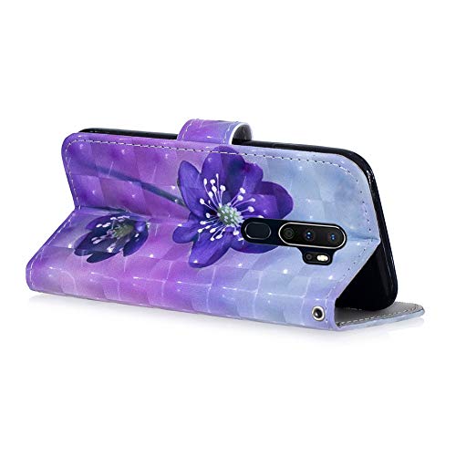 IMEIKONST Portafoglio Custodia per Oppo A9 2020, Pelle PU Diamante Glitter Caso 3D Magnetica Stand Flip Protettiva Compatibile con Oppo A5 2020 Crystal Purple Flower CY