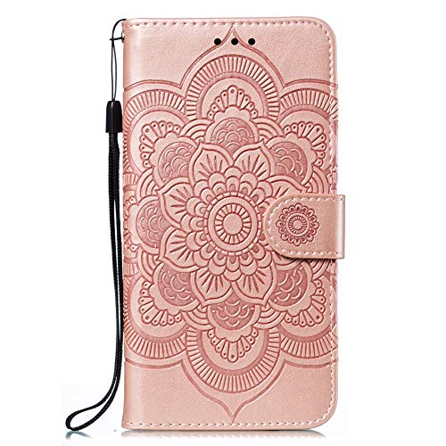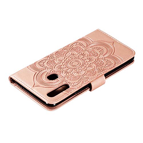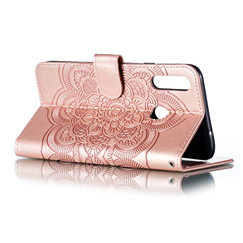 IMEIKONST Samsung A20S Custodia Mandala Embossed Premium Phone Cover a Libro in Pelle PU Flip Portafoglio Holder Protettiva Magnetic Stand Caso per Samsung Galaxy A20S Mandala Rose Gold LD