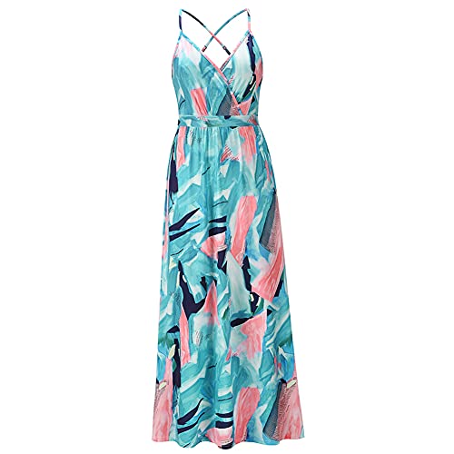 Stile: maxi abito floreale boho da donna, abito da sera da cocktail festa, prendisole da spiaggia, abito stampato floreale, bohémien, motivo tie dye, spalline sottili, profondo scollo a V, design senza schienale, mostra la tua figura affascinante, l'abito può essere indossato in diversi modi cambiando la cintura in vita. si può abbinare ad accessori, cappello, occhiali da sole, sandali, tacchi alti, semplici per completare un look fashion e accattivante.