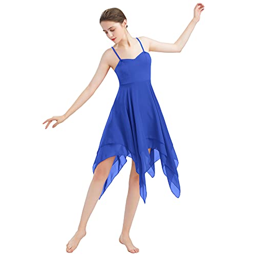 IMEKIS Donne Lirico Abito da Ballo Senza Maniche Cinturino per Spaghetti Ginnastica Abito da Balletto Gonna Asimmetrica Ballerina Moderna Contemporanea Dancewear Blu X-Small