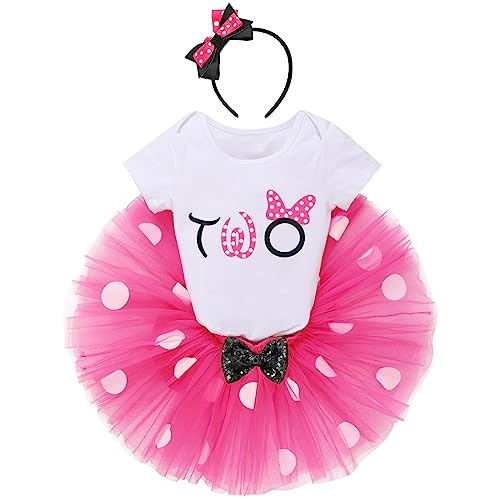 IMEKIS Neonate Minnie Compleanno Completo Manica Corta Pagliaccetto Tutu Gonna und Orecchio di Topo Fascia 3 pezzi Vestiti Estivi Set Servizio Fotografico Costume Rosa caldo 2 anni