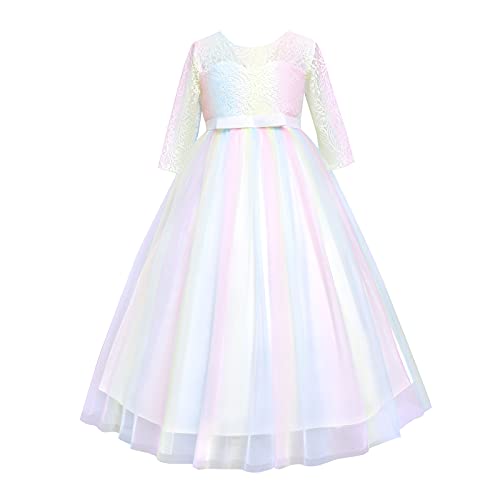 IMEKIS Ragazza di Fiori Vestito da Festa Abito da Ballo Formale da Damigella d'Onore in Pizzo Floreale con Maniche a 3/4 Abito da Principessa Bowknot in Tulle Abito da Spettacolo di Compleanno