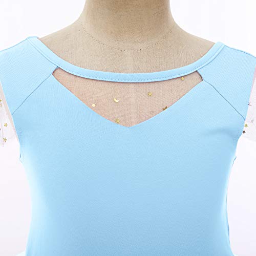 IMEKIS Ragazze Abito da Balletto Arcobaleno Manica a Mosca con Paillettes Body per Ginnastica Danza Tutu in Tulle Tuta Leotard Ballerina Costume da Ballo Blu 9-10 Anni