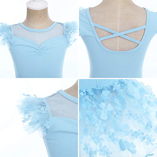 IMEKIS Ragazze Vestito da Balletto Cotone Ginnastica Body Tutu Gonna Manica Volant Fiore Leotard Costume da Ballo Principessa Fata Ballerina Dancewear Blu 3-4 Anni