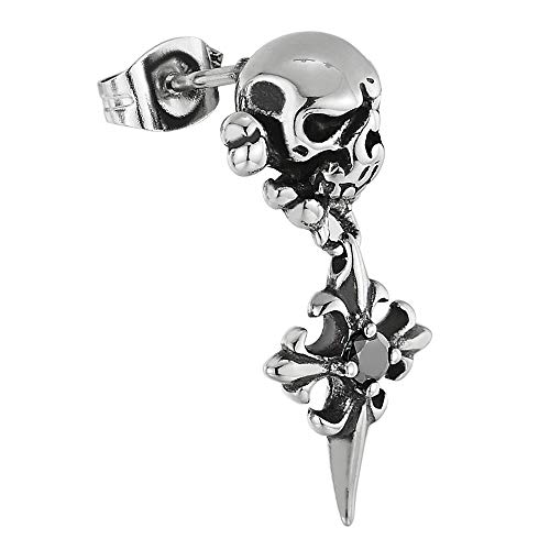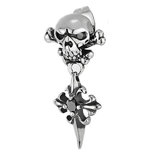 IMETACLII Annata Pirata Teschio Orecchini del Cranio con Pendenti Spillo Croce e Nero Zirconi, Uomo, Acciaio Inossidabile, 2 Pezzi