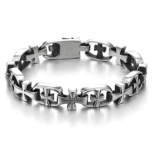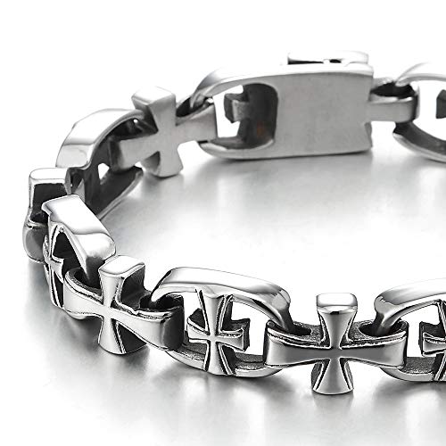 IMETACLII Squisiti Croce Collegamento Chain Braccialetto, Uomo Bracciale Acciaio Inossidabile, Punk Rock Biker, Catena Fede