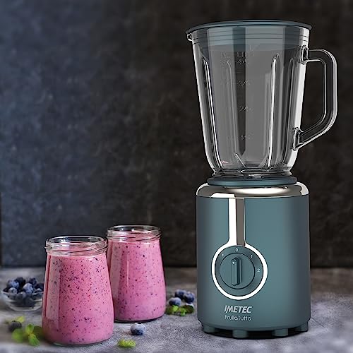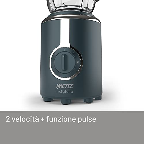 Imetec FrullaTutto Frullatore, Lame Tritaghiaccio in Acciaio Inox, Bicchiere da 800 ml in Vetro Antigraffio, 2 Velocità, Funzionamento Impulsi, 500 W, 2 Velocità, Lavabile Lavastoviglie