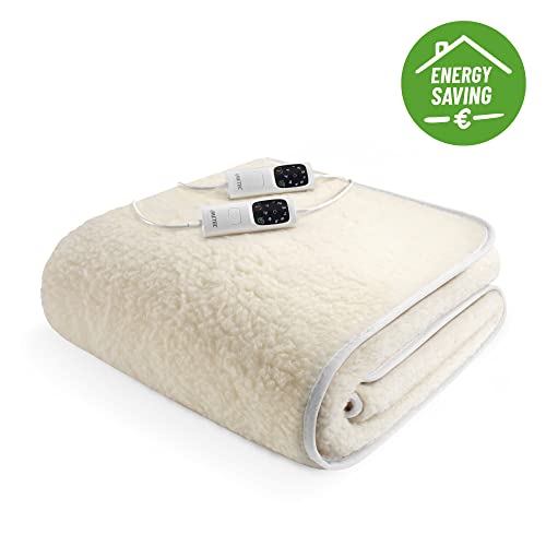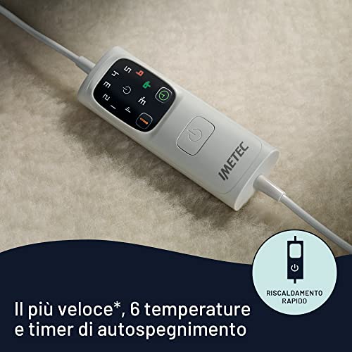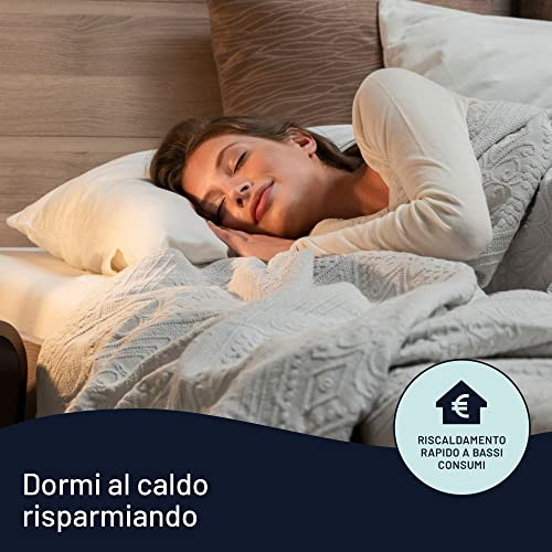 Imetec Scaldasonno Adapto matrimoniale 150 x 160 cm, Basso consumo, Riscaldamento rapido, Temperatura personalizzata, 100% lana e merino, Made in italy, 2 comandi separati, 6 temperature