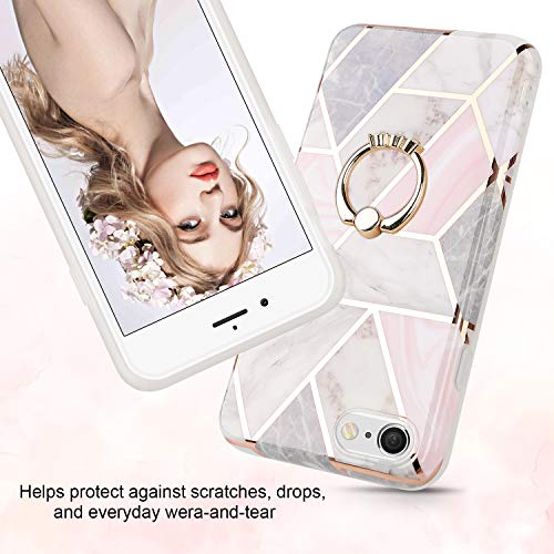 Imikoko Custodia per iPhone 6/6S, con anello, elegante, protettiva, resistente agli urti, cover posteriore, motivo floreale, in silicone TPU, design retrò, alla moda, antigraffio e antipolvere