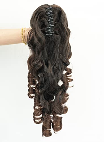 IMISSU Clip lunga coda di cavallo artiglio riccio sull'estensione dei capelli mandibola coda di cavallo pezzo di capelli per le donne (Ombre Marrone)