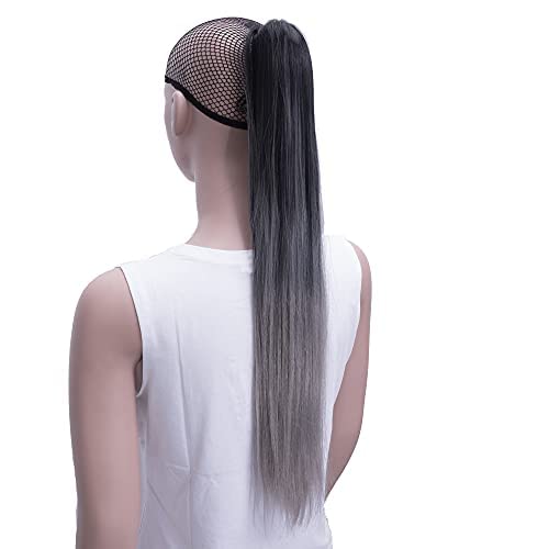 IMISSU Clip a mascella dritta su estensioni parrucchino Clip coda di cavallo Artiglio Ombre coda di cavallo pezzi di capelli parrucca per le donne (Ombre Grigio)