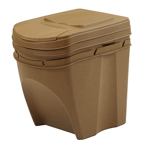 IMJ-Global Set di 2 bidoni cestini SortiBox impilabili raccolta differenziata in plastica ECO con 33% legno 50 litri (2x25L) da riciclaggio Natura marrone pattumiera per interni casa da cucina