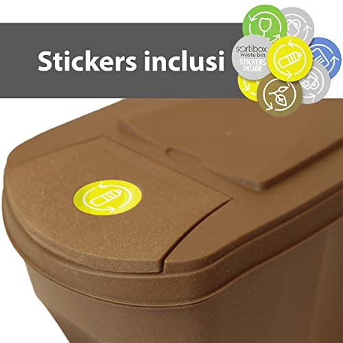 Il Sortibox è progettata per adattarsi agli spazi limitati, e comprende adesivi indicanti il tipo di rifiuto da applicare sui coperchi. Il design minimalista e funzionale si adatta alle tendenze attuali di design e facilita l'organizzazione e la gestione dei rifiuti in casa