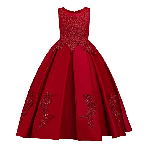 IMKEIS Ragazze Abito da Damigella d'Onore Senza Maniche Principessa con Paillettes Fiore Ricamato Bowknot Tutu Matrimonio Compleanno Spettacolo Abito da Ballo Lungo Rosso 4-5 Anni