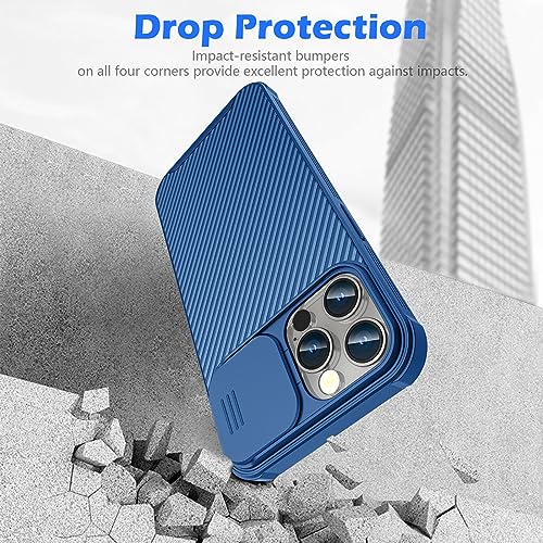 Imluckies Cover per iPhone 15 Pro Max Custodia con Fotocamera Scorrevole, Antiurto di Livello Militare, Sottile Anti-Graffio in PC e TPU Case per 15 Pro Max 2023 - Blu