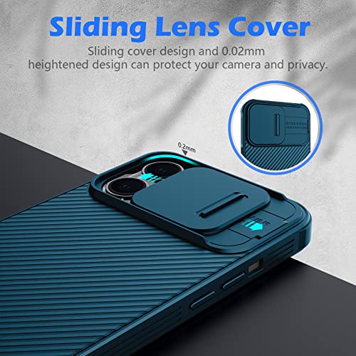 Imluckies Cover per iPhone 13 Pro 6,1 pollici Custodia, con Protezione per Fotocamera Scorrevole, Antiurto Antigraffio Sottile, in PC Rigido e Morbido Paraurti Costodia, Blu