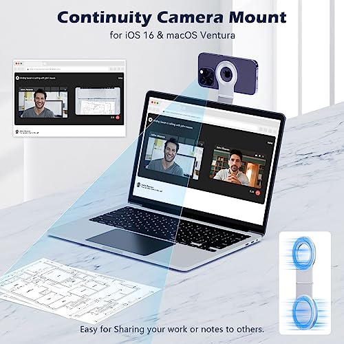 Design pieghevole - Il supporto presenta un design pieghevole e portatile che consente di regolare l'angolazione in base alle proprie esigenze. Può essere ripiegato in una dimensione sottile e portatile, risparmiando spazio e rendendolo facile da trasportare. Può essere applicato alla Continuity Camera utilizzando la potente fotocamera dell'iPhone con il Mac.