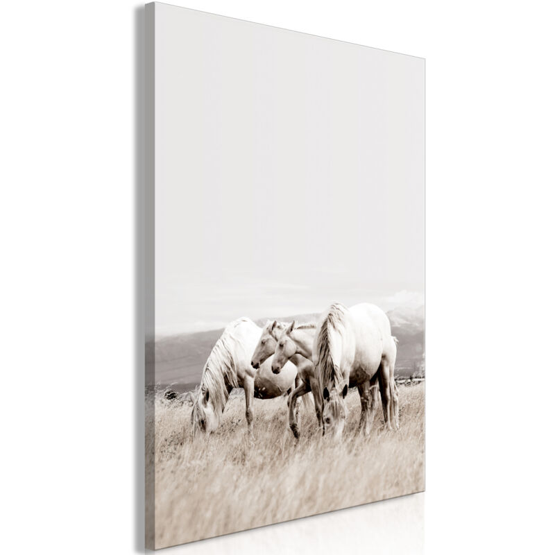 Un dipinto su tela come decorazione impressionante. Dipinti unici con motivi estetici sono il complemento perfetto per una disposizione elegante. Con un po' di creatività, possono essere facilmente abbinati a qualsiasi stile di arredamento. Il quadro su tela "Picture - White Horses (1 Part) Vertical" è un elemento decorativo unico e quasi universale. Piacerà a tutti coloro che cercano decorazioni originali per completare la propria sistemazione. Posizionalo nel tuo interno e vedrai che è completo e non avrai più bisogno di altre aggiunte. Non devi preoccuparti della qualità e dell'aspetto della tua decorazione. I dipinti su tela disponibili in offerta riproducono fedelmente i dettagli. La risoluzione di stampa opportunamente regolata garantisce l'intensità dei colori e la nitidezza del motivo presentato. Questi tipi di prodotti sono la soluzione perfetta se ti lamenti ancora dello spazio vuoto sul muro e ti chiedi come riempirlo. È un elemento decorativo elegante che rende gli interni