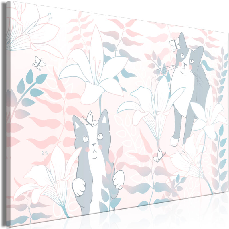 Un dipinto su tela come decorazione impressionante. Dipinti unici con motivi estetici sono il complemento perfetto per una disposizione elegante. Con un po' di creatività, possono essere facilmente abbinati a qualsiasi stile di arredamento. Il quadro su tela "Picture - Cat Affairs (1-part) wide - second variante" è un elemento decorativo unico e quasi universale. Piacerà a tutti coloro che cercano decorazioni originali per completare la propria sistemazione. Posizionalo nel tuo interno e vedrai che è completo e non avrai più bisogno di altre aggiunte. Non devi preoccuparti della qualità e dell'aspetto della tua decorazione. I dipinti su tela disponibili in offerta riproducono fedelmente i dettagli. La risoluzione di stampa opportunamente regolata garantisce l'intensità dei colori e la nitidezza del motivo presentato. Questi tipi di prodotti sono la soluzione perfetta se ti lamenti ancora dello spazio vuoto sul muro e ti chiedi come riempirlo. È un elemento decorativo elegante che