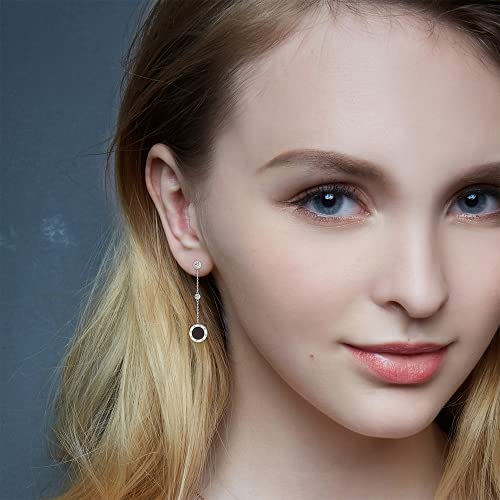 Immobird Tondi Orecchino Bottone Neri con Argento Sterling 925 Zirconia Cubica Orecchini Pendenti Lunga Gioielli Regali Per Donna