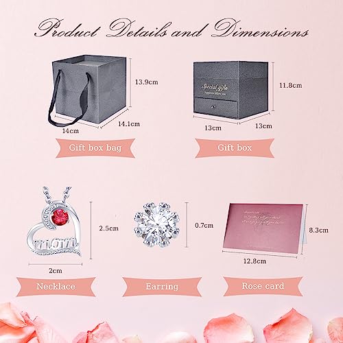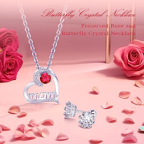 IMMORROSA Rose Eterne con Collana MOM & Orecchini a Corona di Cristallo, Festa della Mamma Idee Regalo, Scatola Rosa Conservata con Collana, Confezione Regalo per Mamma, Compleanno, Anniversario