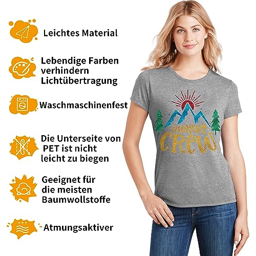 Sgancio a caldo senza attese - Trasferiscilo sul tuo obiettivo con una pressa termica o un ferro da stiro. Applica una pressione di 300℉-320℉ (150℃-160℃) per 10-15 secondi. Non c'è bisogno di aspettare che il vinile si raffreddi completamente, l'intero supporto può essere staccato direttamente dopo aver stirato. Il nostro vinile termoadesivo è sufficientemente ampio per grafiche di grandi dimensioni e compatibile con tutte le macchine Cricut.