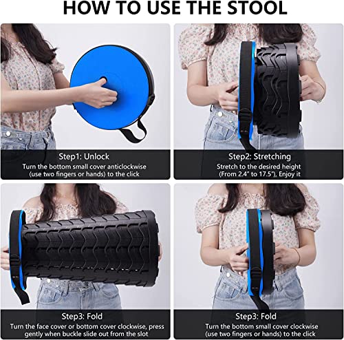 【Altezza regolabile/retrattile】: Questa sedia pieghevole portatile con design ergonomico e ergonomico si apre e si regola all'altezza desiderata da 6.5 a 45 cm. Lo sgabello telescopico è un ottimo regalo per chi cerca uno sgabello portatile e uno sgabello telescopico.