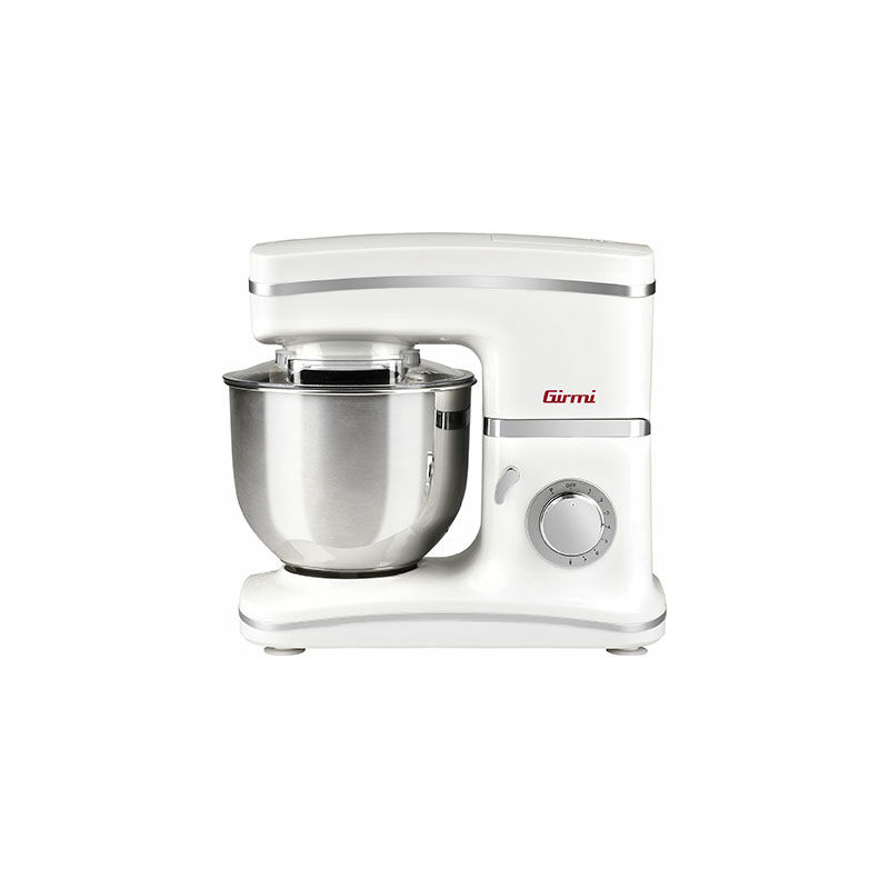 Può lavorare una grande varietà di ingredienti, grazie all'ottima potenza ed alle 8 velocità di lavorazione di cui è dotato. In pochi semplici passi è possibile preparare impasti per pane, pizza, pasta all'uovo ed impasti per dolci e biscotti. Contenitore Lt. 5,2 in acciaio inox con coperchio. Possibilità di lavorare impasti di max Kg. 2,4(a seconda degli alimenti da impastare). Piedini con ventosa per maggiore stabilità. Dispositivo di sicurezza che impedisce uso involontario. Accessori inclusi: uncino impastatore e mescolatore in alluminio, frusta sbattitrice (o planetario) in acciaio inox, coperchio in plastica trasparente. Potenza Watt 1.000 (1.300 max). Peso Kg. 6,3.