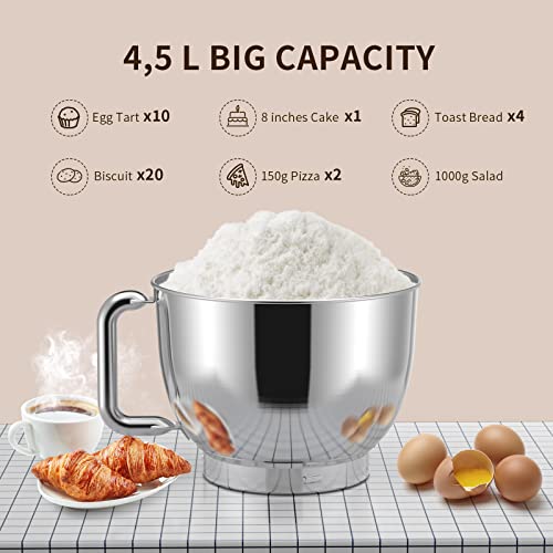 Impastatrice Planetaria, Zuccie 1000W Robot da Cucina Multifunzione, 4.5L Impastatrice Professionale con Frusta, Gancio per Impastare, Frusta per Dolci, Ciotola di Acciaio Inossidabile (Bianco)
