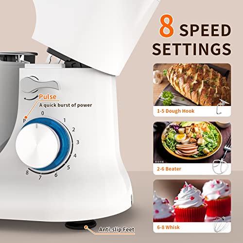 Eccellente Miscelatore In Piedi: Motore di rame puro 1000W con 8 velocità e modalità di impulso (basso rumore), nuovo sistema di agitazione planetaria. Questa impastatrice può garantire una miscelazione su misura senza sforzo e a fondo per una varietà di alimenti, dalla pasta al gelato, dagli albumi all'impasto del pane
