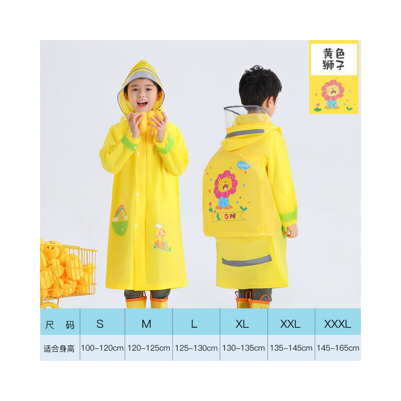 Formato:Taglia M impermeabile lunghezza 78.5 cm, manica 55 cm, adatto per bambini altezza 115-125 cmTaglia L impermeabile lunghezza 83 cm, manica 57cm, adatto per bambini altezza 125 -135cmSizeX L impermeabile lunghezza 87 cm, manica 60.5 cm, adatto per bambini altezza 135-145 cmTaglia XXL impermeabile lunghezza 92 cm, manica 64.5 cm, adatto per bambini altezza 145-155 cmTaglia XXXL impermeabile lunghezza 96.5 cm, manica 67.5 cm, adatto per bambini altezza 155-165 cm