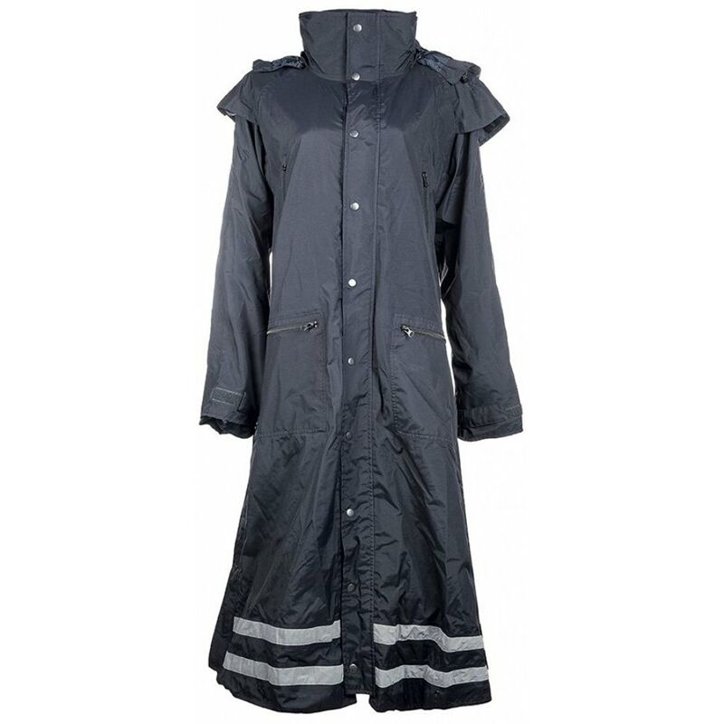 Impermeabile da equitazione donna con fasce catarifrangenti modello Seattle Marca: HKM Classic Colori: blu scuro 6900, verde pino 5500 Taglie: L, M, S, XL, XS, XXL, XXXL - impermeabile - traspirante - resistente al vento - colonna d'acqua 2.000 mm - provvisto di gambali nella parte interna - fodera: 100% poliestere - tessuto superiore: 100% nylon - spacchi posteriori per maggiore libertà di movimento - cerniera a due vie - allacciatura con risvolto e bottoni automatici - chiusure a strappo - cuciture nastrate - 4 tasche esterne - due tasche interne - con cappuccio Lavaggio: - lavabile in lavatrice a 30 gradi - adatto all'asciugatrice ad aria fredda