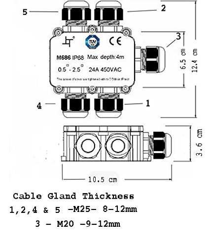 24 a 450 V 5 way impermeabile IP68 cavo elettrico cavo di collegamento scatola di giunzione UK, 8-12mm, 1