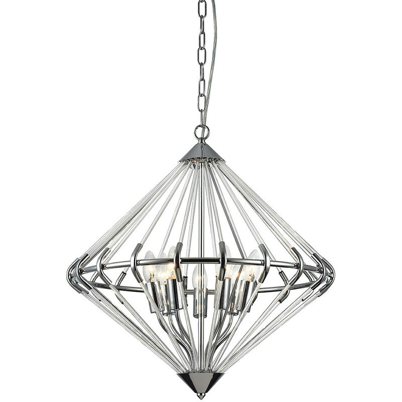 Impex Gerda Plafoniera a sospensione con struttura in filo metallico a 7 luci cromata | Finitura: Cromata | Altezza: 84 cm | Lunghezza: 55 cm | Tipo di lampada: E14 | N. di lampade: 7 | Dimmerabile: Sì - Sono necessarie lampadine dimmerabili | Potenza (max): 60 W