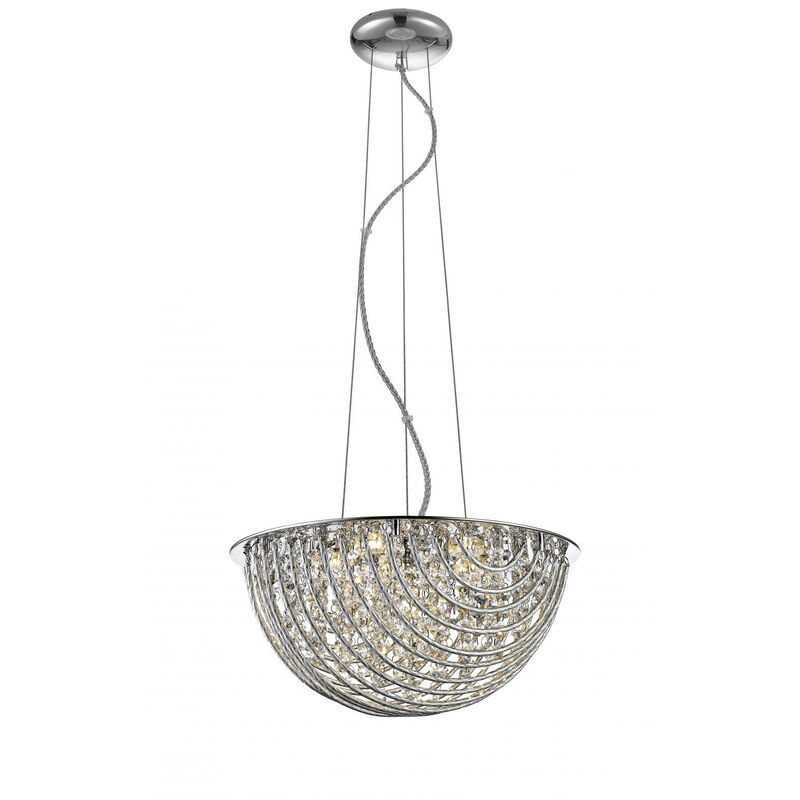 Impex Millie Plafoniera a sospensione in cristallo cromato a 6 luci | Finitura: Cromata | Altezza: 22 cm | Altezza minima: 30 cm | Altezza massima: 110 cm | Lunghezza: 52 cm | Tipo di lampada: G9 | N. di lampade: 6 | Dimmerabile: Sì - Sono necessarie lampadine dimmerabili | Potenza (max): 28 W