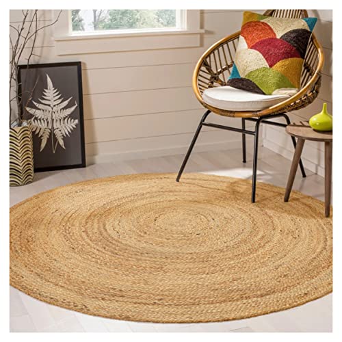 IMPEXART Tappeti rotondi in juta colori naturali chiari Tappeti boho in juta intrecciati a mano 122 X 122 cm per soggiorno Tappeti rotondi intrecciati reversibili moderni per sala da pranzo