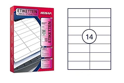 Bogen etichette 105 X 42,3 mm DIN A4 - Etichette per foglio: 14 etichette adesivi universale - Fogli per pacco: 100 fogli