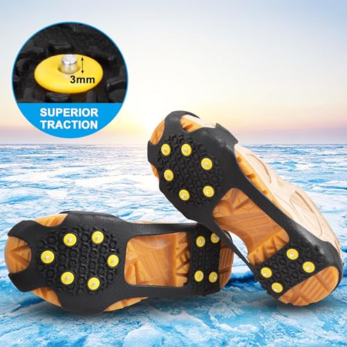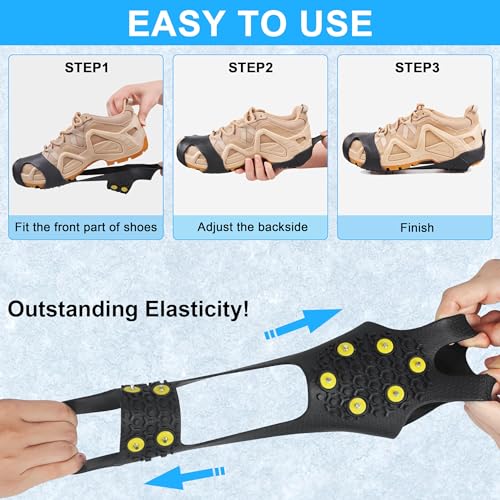 5. Questi tacchetti antiscivolo Snow Ice Cleat Crampons Gli overshoes sono adatti a tutti i tipi di scarpe sportive, scarponi da arrampicata, doppi stivali ecc. I copriscarpe sono dotati di prigionieri di acciaio con presa a terra che offrono un'eccellente trazione su ghiaccio e neve e aiutano a evitare