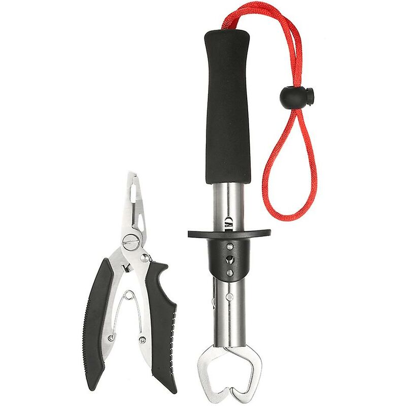 Caratteristiche: con il cordino ad anello, non preoccuparti che le pinze da pesca cadano. Il taglierino in acciaio inossidabile può tagliare tipi di filo, filo e persino ganci. Le mascelle ad artiglio d'aquila sono molto più facili da rimuovere o sostituire i ganci Le pinze da pesca con cuscinetti a molla ad apertura automatica su due lati funzionano anche con una mano.Il tubo e i componenti in acciaio inossidabile non si rompono in acqua salata e possono essere utilizzati per anni.Puoi afferrare il pesce rapidamente e saldamente con una mano usando il impugnatura da pesca, particolarmente utile per pesci spinosi o velenosi.Caratteristiche: Materiale: acciaio inossidabile Colore: nero Dimensioni articolo;