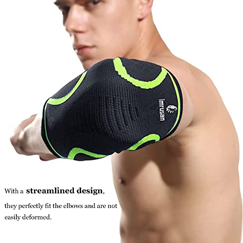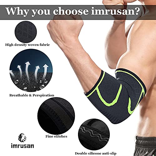Imrusan 1 Paio Gomito Tennista Unisex, Gomitiere con Guaina Compressiva, Gomitiera, Fascia Gomito per Sport, Tennis, Golf, Fornisce Supporto Gomito, Verde - L
